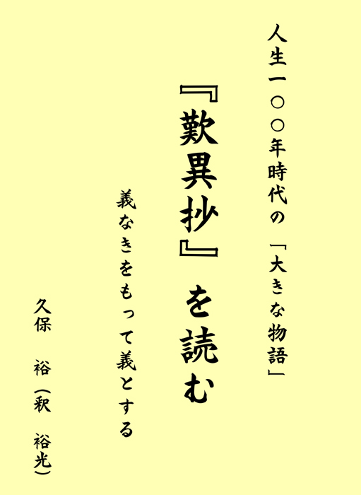「歎異抄を読む」 人生100年時代の「大きな物語」