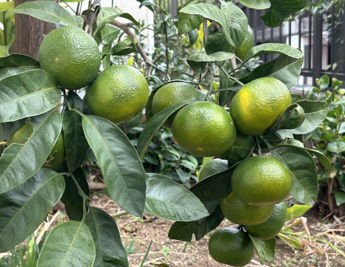 | 20251280 我家の庭のミカン ![]() 成熟した庭のミカン 今年は枝の剪定したりして、甘みのある美味しいミカンになった。 |